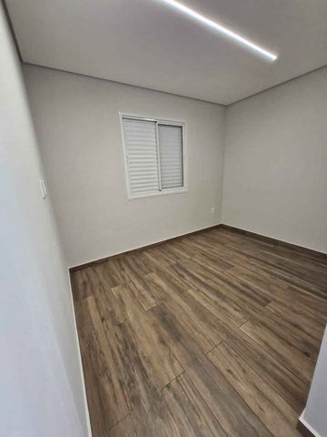 Sala, cozinha, 2 quartos sendo 1 suíte, 2 banheiros, varanda, área de serviço e 1 vaga de garagem.