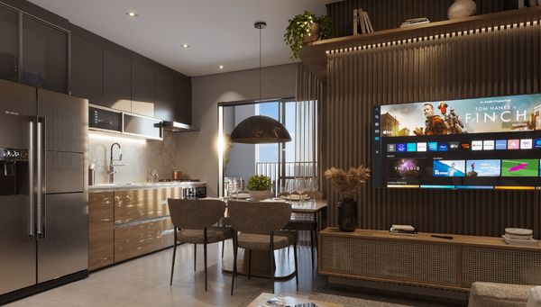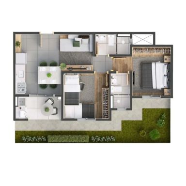 Sala 2 ambientes, varanda gourmet, cozinha, 2 quartos com 1 suíte, 2 banheiros, área de serviço e 1 vaga de garagem.