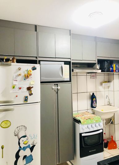 Apartamento com excelente localização, planejado na cozinha e banheiro, acabamento em porcelanato e cerâmica, cozinha americana, acabamento de gesso no teto, iluminação em LED, box em blindex no banheiro, revestimento até o teto nas áreas molhadas, interfone, portaria 24 horas, quadra de áreia, quiosque com churrasqueira, campo de futebol, playground, Mini mercado e salão de festas.