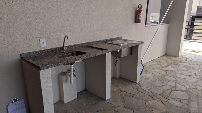 Excelente novo com excelente localização, piso porcelanato, cozinha americana, ponto de ar condicionado, varanda gourmet com churrasqueira elêtrica, revestimento até o teto nas áreas molhadas, 2 elevadores, interfone, portaria 24 horas, espaço gourmet, piscina, churrasqueira, academia e salão de festa.