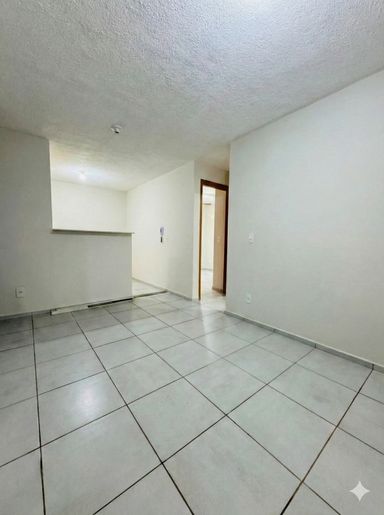 Sala de estar, cozinha, 2 quartos, 1 banheiro, área de serviço e 1 vaga de garagem coberta.