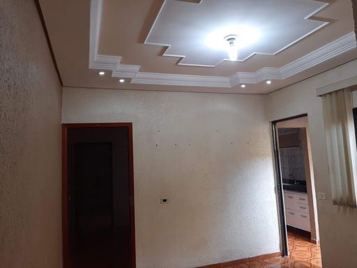 Sobrado com sacada, casa muito espaçosa, teto com acabamento em gesso, piso com acabamento em cerâmica, revestimento até o teto nas áreas molhadas, box e espelhos nos banheiros.