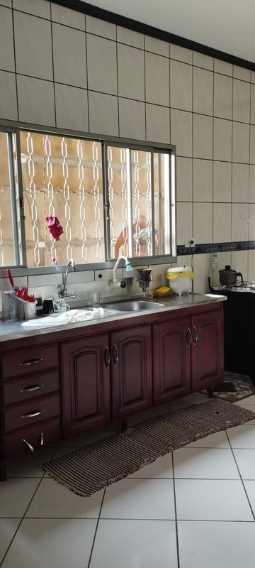 Sala, cozinha, 3 quartos, 2 banheiros, área de serviço e 4 vagas de garagem coberta.